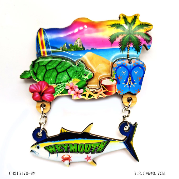 Personalice su imán con nombres de destinos, detalles de eventos o logotipos de marcas para crear un recuerdo único. Ya sea para un centro turístico costero, una tienda de regalos o un evento especial, este imán se convierte en un recuerdo preciado que cuenta una historia.