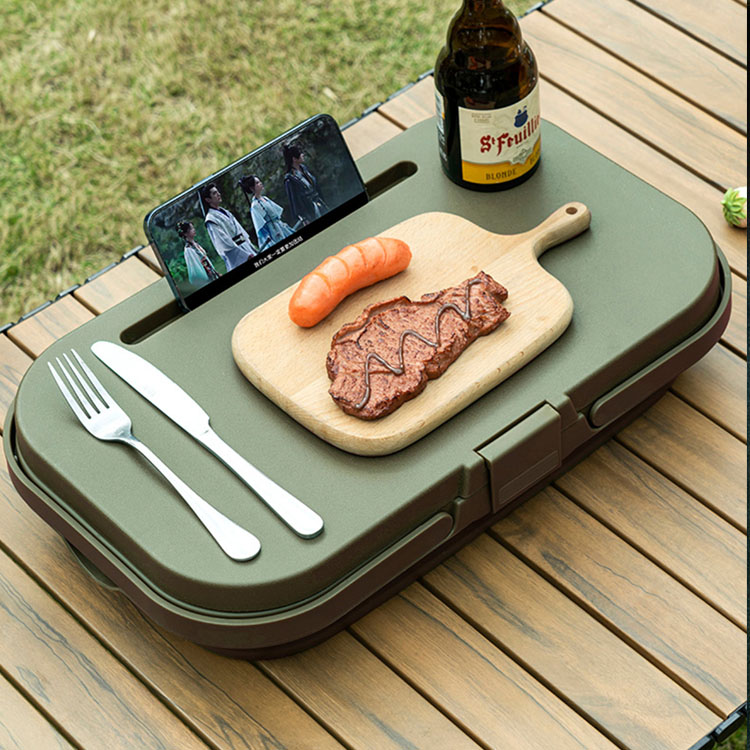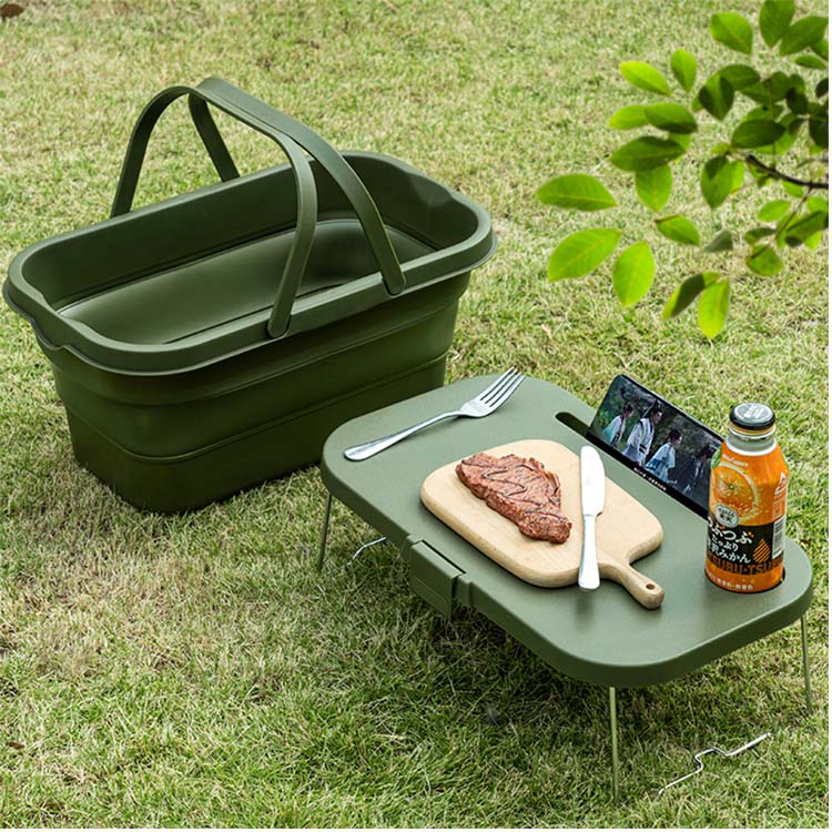Esta innovadora canasta se transforma de un contenedor de almacenamiento profundo en una superficie de mesa plana y estable en segundos, brindando almacenamiento organizado y una conveniente plataforma para servir o comer para actividades al aire libre.