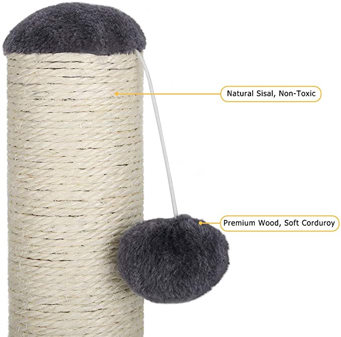 â ™ ¥ ã €Unique & Cute Design】Cat sisal scratch post is covered with grey and white, content with a plush ball, which makes the post more attractive to cats. The toy ball will lead full stretch for cats, perfect for claw scratch.