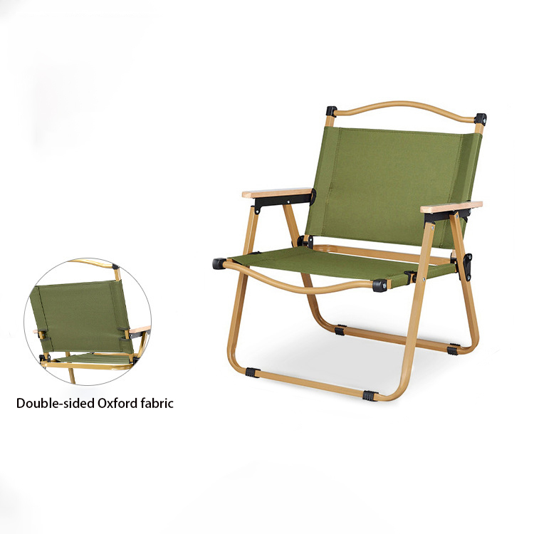 Silla de camping plegable de acero inoxidable, liviana y de alta calidad. Su solución premium para sentarse al aire libre. Esta silla de camping de alta calidad combina una estructura liviana de acero inoxidable con pasamanos de madera maciza para una comodidad superior. Perfecto para salidas a la playa y relajación en el jardín, ofrece durabilidad y portabilidad elegante.