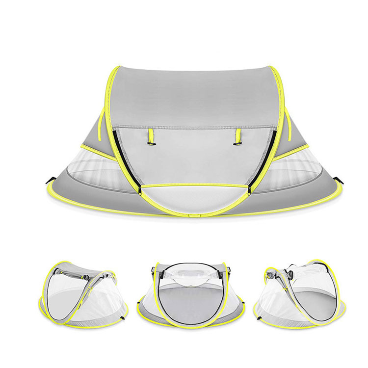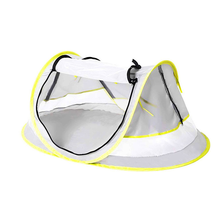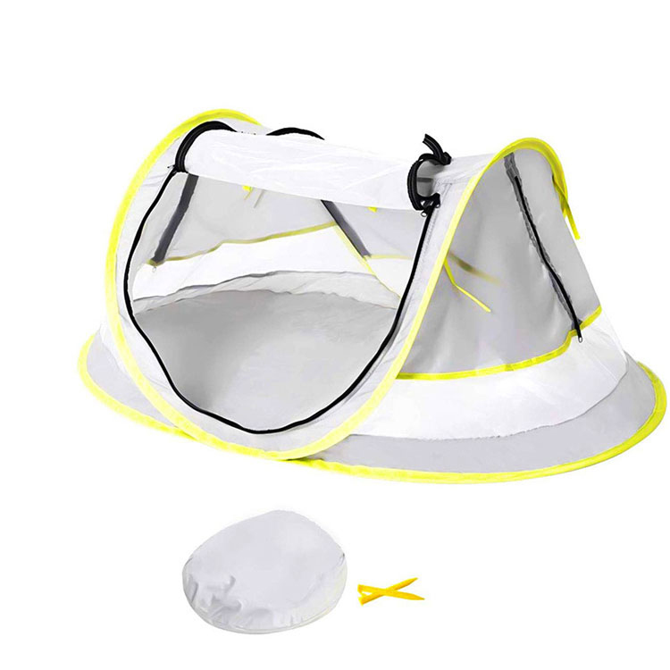 Tienda de campaña emergente ligera de poliéster impermeable de una sola capa. Su mejor refugio de playa de verano para aventuras familiares. Esta carpa emergente liviana presenta una construcción de poliéster impermeable de una sola capa y puede acomodar cómodamente a cuatro personas. Perfecto para salidas a la playa y acampadas de temporada, combina una configuración rápida con una protección climática confiable.