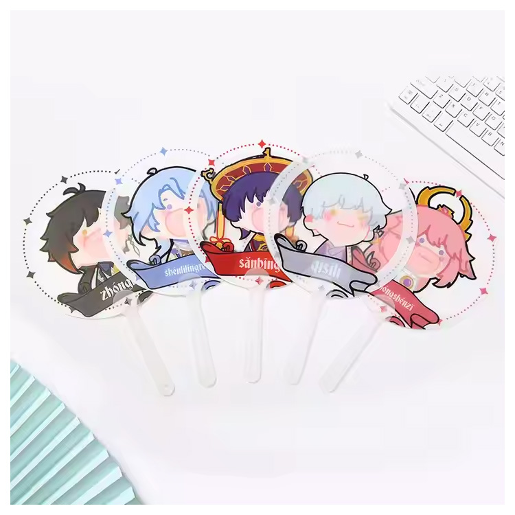 Mini abanicos de mano impermeables transparentes de plástico de estrella de anime. Abanicos de mano de plástico transparente de anime personalizados— Ligera, resistente al agua y con el estampado de tus personajes o logotipos favoritos. Perfecto para eventos, conciertos, promociones o souvenirs. Una forma divertida y práctica de mantenerse fresco con estilo.