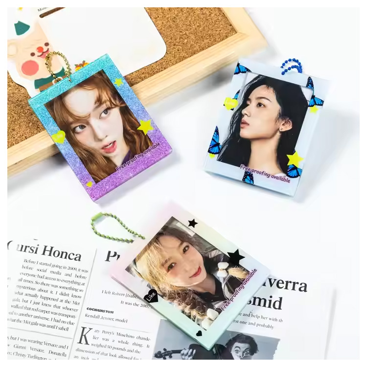 Elaborado con colores vibrantes y un marco transparente, este llavero también sirve como expositor de fotografías que resalta tus recuerdos. Ya sea que se use para decoración de automóviles o regalos de boda, agrega un toque divertido y moderno a los accesorios cotidianos.