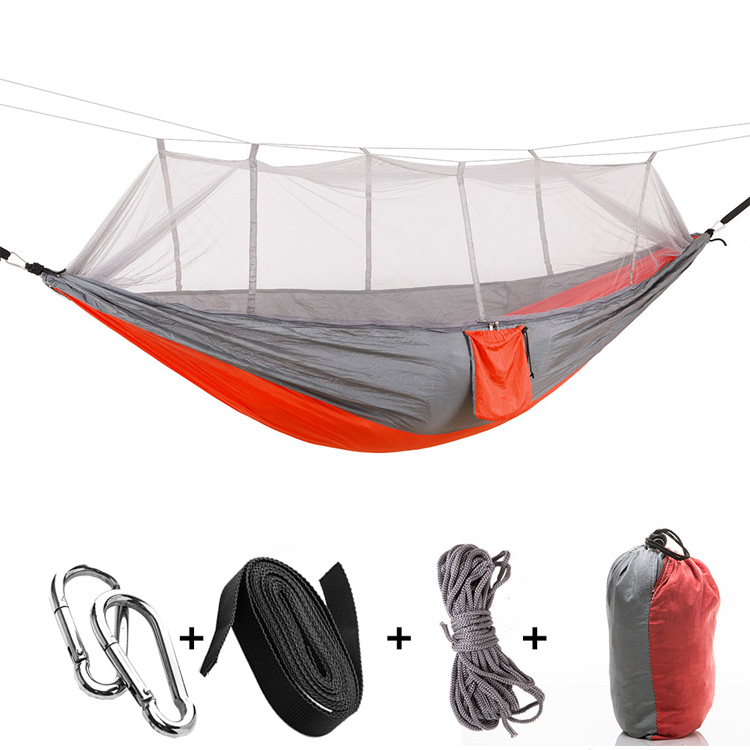 Hamaca portátil para acampar al aire libre, tienda colgante. Su último santuario portátil para aventuras al aire libre. Este sistema de hamaca todo en uno cuenta con una mosquitera protectora y un cómodo diseño de tienda colgante. Perfecto para acampar y hacer caminatas, garantiza una relajación sin insectos y una protección segura durante la noche.