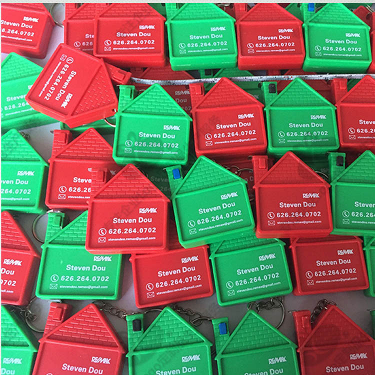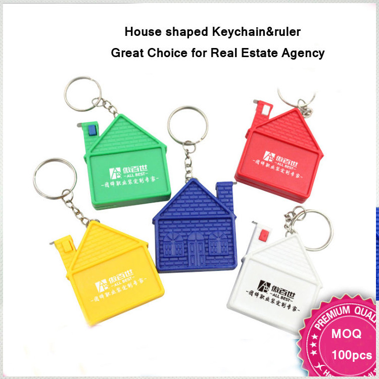 Productos promocionales, regla de llavero con forma de casa impresa. Regla de llavero con forma de casa promocional de bienes raíces con logotipo personalizado, perfecta para publicidad y reconocimiento de marca. Fabricada con materiales duraderos, esta práctica y llamativa herramienta combina funcionalidad con un diseño único, ideal para clientes, eventos y obsequios.