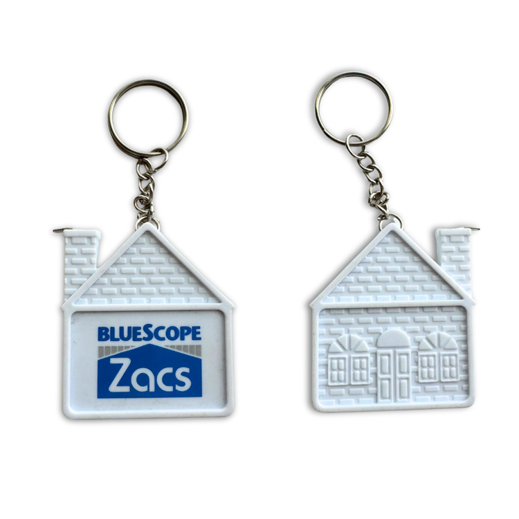 Con una silueta de casa única, este llavero llama la atención al instante y transmite un cálido concepto de "hogar", perfecto para las industrias de bienes raíces, construcción y decoración del hogar como regalo promocional.