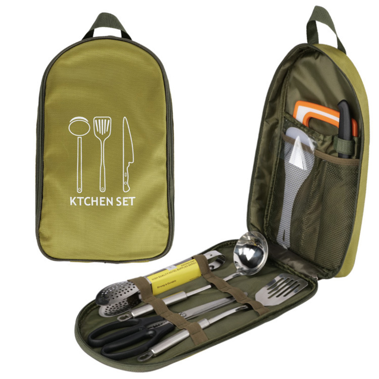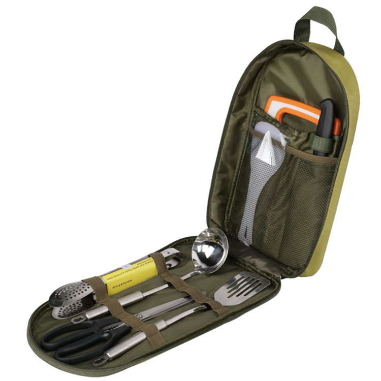 Todo lo que necesita para cocinar al aire libre viene perfectamente organizado en una bolsa portátil, lo que elimina la molestia de tener que reunir herramientas y accesorios para acampar por separado para sus viajes.