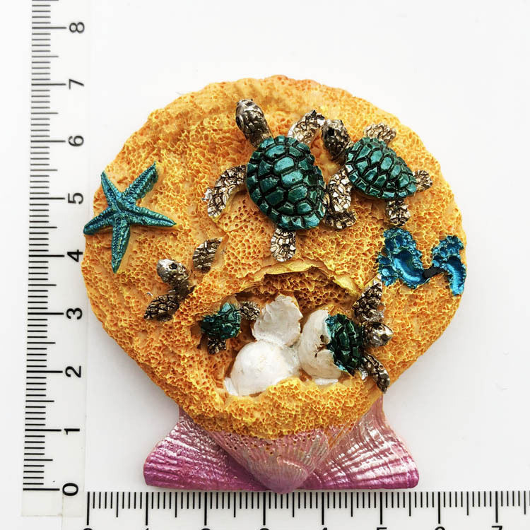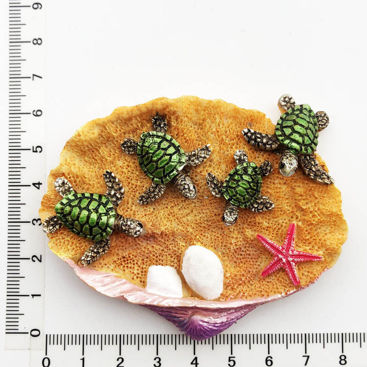 Con una adorable forma de estrella de mar adornada con tres tortugas intrincadamente detalladas, este imán para nevera captura la belleza del océano en una encantadora obra de arte en miniatura. Cada elemento está cuidadosamente esculpido para aportar un toque realista y decorativo a su hogar.