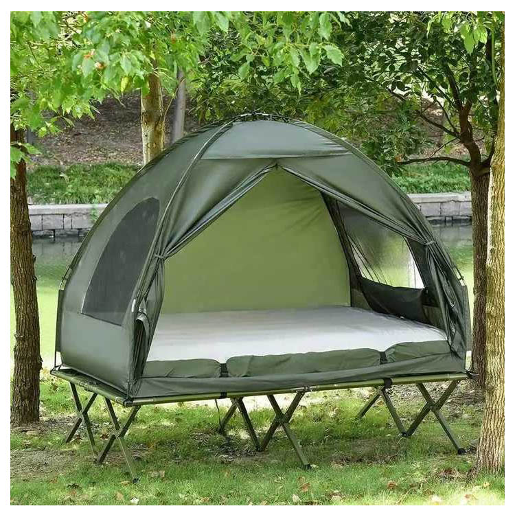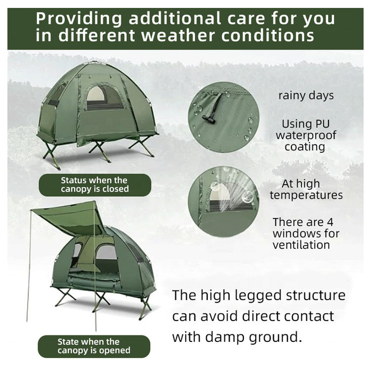 Cuenta con una plataforma elevada para dormir incorporada que combina protección a prueba de humedad con mayor comodidad, separándolo efectivamente del suelo húmedo y mejorando el aislamiento.