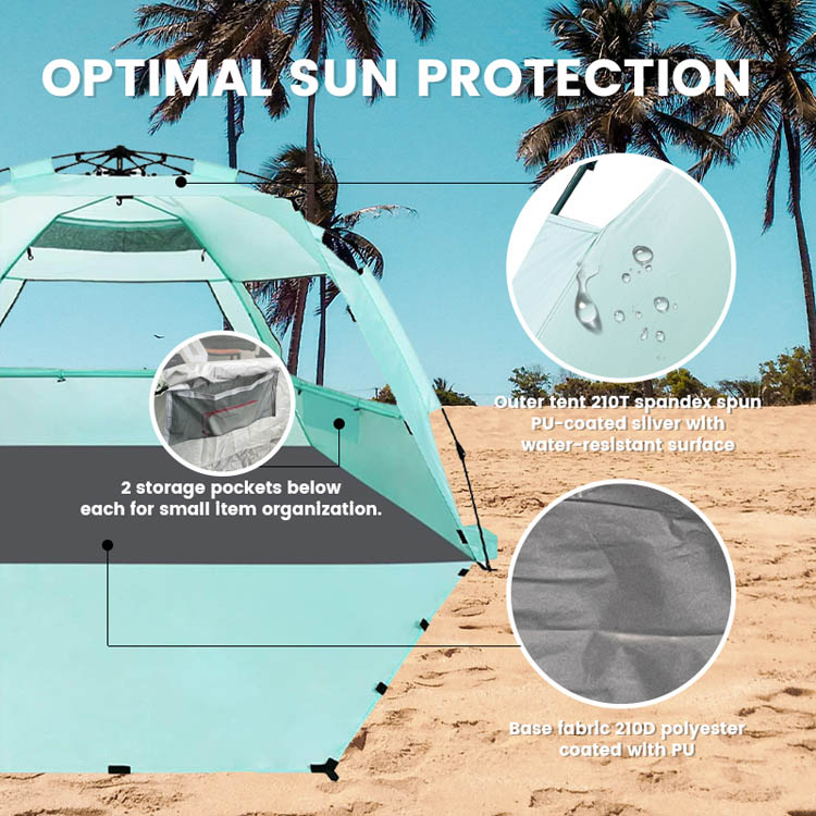 Confeccionado con poliéster 190T de alta calidad y con un peso de solo 3,8 libras, brinda una portabilidad excepcional sin comprometer la durabilidad ni el rendimiento de la protección solar.